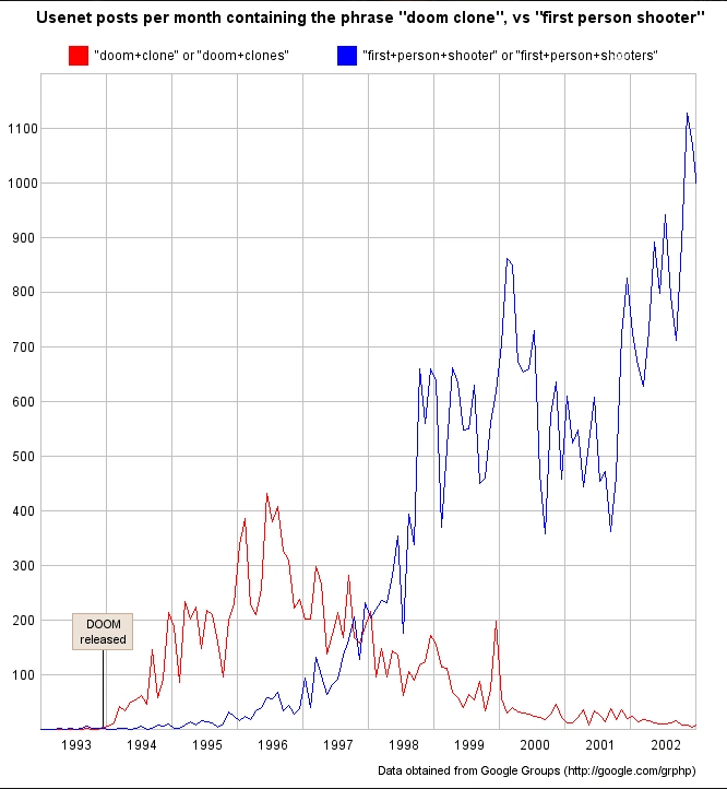 这款游戏中挥舞链锯的爽快动作以前所未有的势头闯入大众视野,它更是定义了上世纪 90 年代的 FPS 游戏(有数据表明,直到 90 年代末,「《毁灭战士》克隆游戏」这个术语实际上一直是第一人称射击游戏的通用指代词)。 由于《毁灭战士》的流行,许多早期的第一人称射击游戏在其发行不久后便如雨后春笋般相继出现