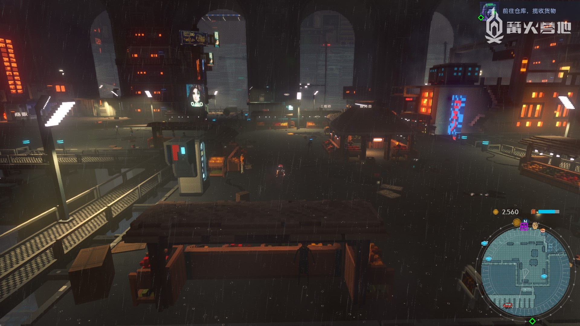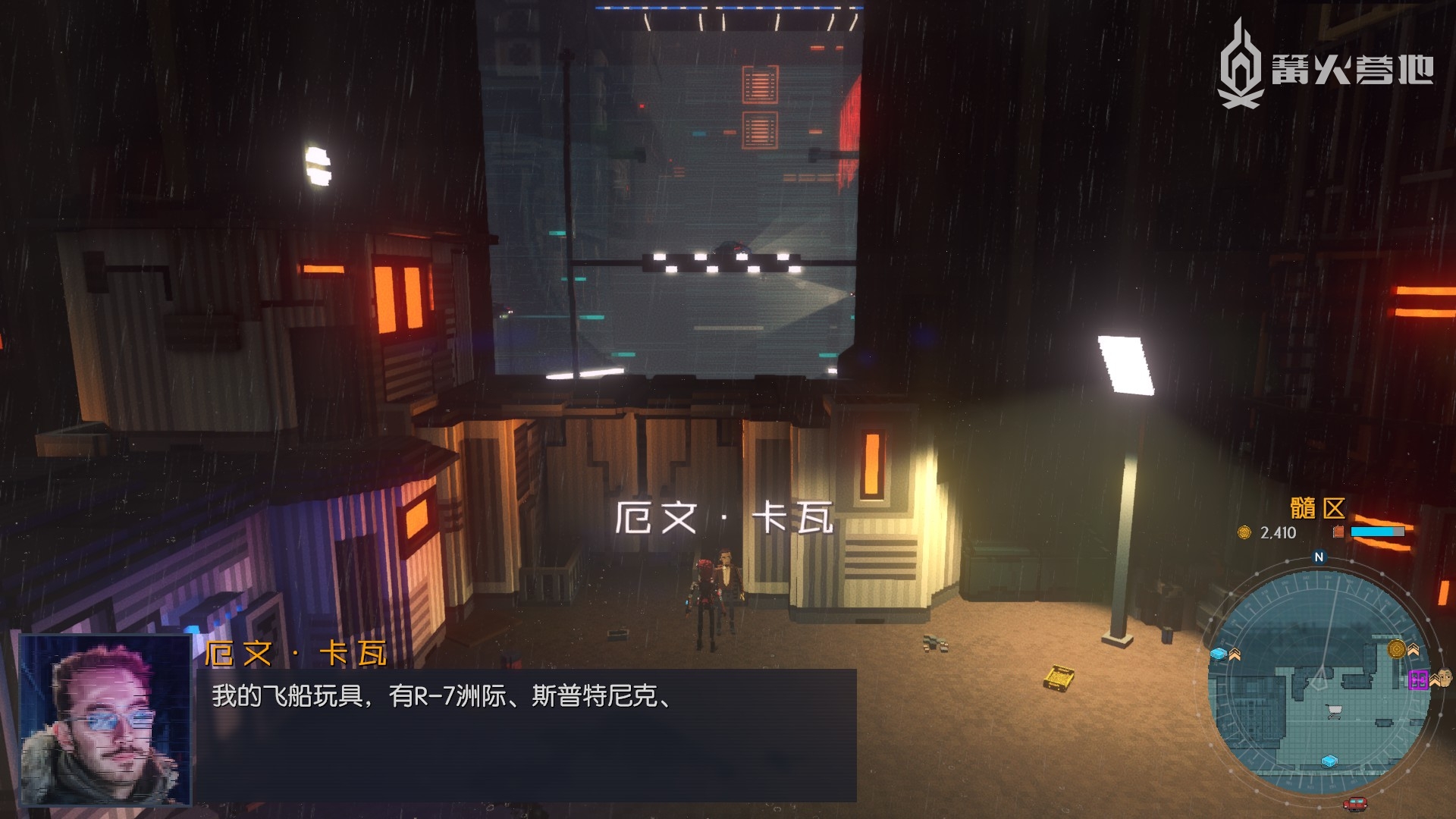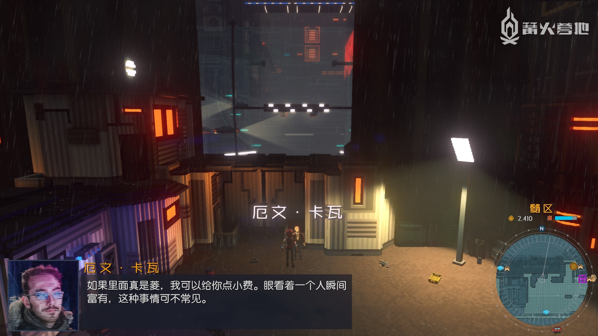 但拉尼娅在这个过程中难免与形形色色的人类以及仿生人接触,通过长长短短的各种对话,她开始了解尼瓦里斯光鲜亮丽的霓虹灯背后隐藏着哪些黑暗的规则与现实,开始明白这座高耸入云的未来都市里生活着怎样的一群人。 游戏的具体玩法十分简单,玩家开着一辆浮空车辆四处运送货物即可,这些任务主要来自总控台的分配,要求你感到 A 点从某人手里接过包裹,又或是自己在目标地点搜索一番找到要运送的东西,然后再上车将它送到地图上的指定地点,一个运送任务就算结束,系统会自动结算一笔奖金,接着总控又会生成一个新的任务交给玩家。 地图上的小绿框就是目的地