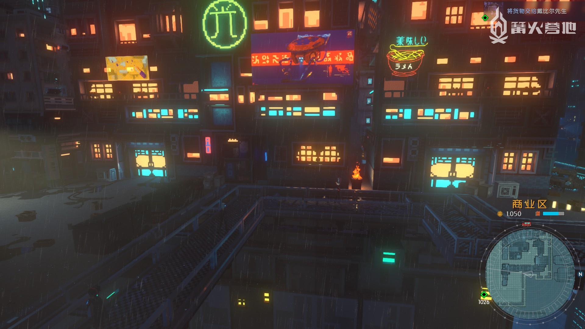即便制作者在运送过程中加入了少许变化和一些分支选项,例如让玩家决定从 NPC 处获得的一些非关键物品究竟送到哪里,又或是到达目的地之后找不到交易人等等,算是给主角的送货之旅制造了一些波折,但总的来讲整个系统的结构仍旧简单至极,如果没有那些充实的小故事不断牵引,相信很多人坚持不到 1 个小时就会忍不住弃坑。 而抛开游戏的玩法不谈,《云朋克》的另一大吸引力当然是其无处不在的「赛博朋克」氛围,从场景美术到 BGM 到故事设定,每一处都可以说是「赛博朋克」世界观的典型体现。