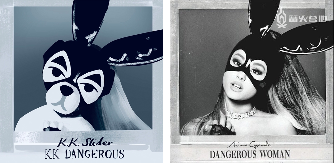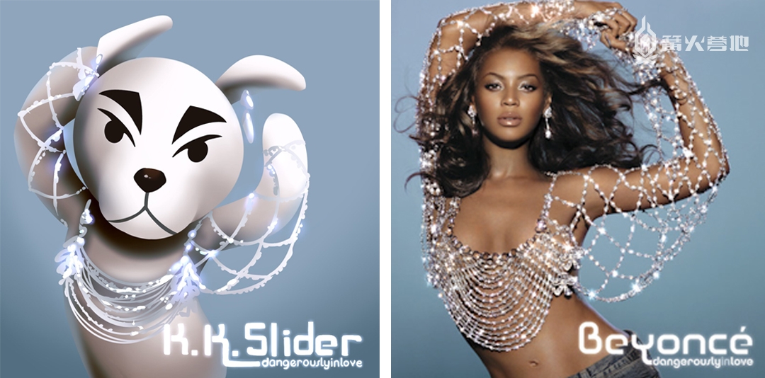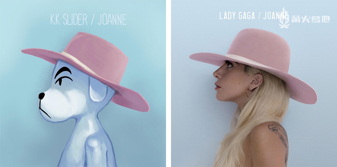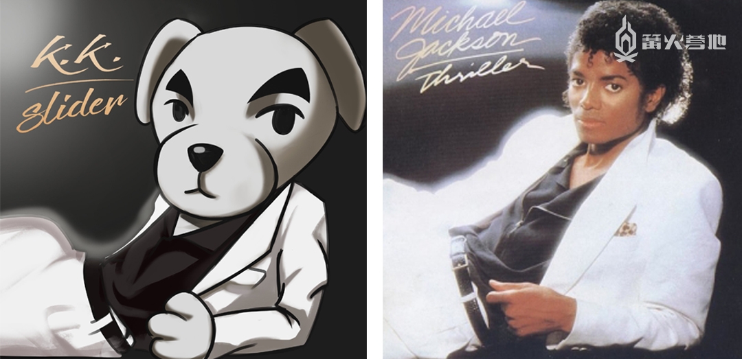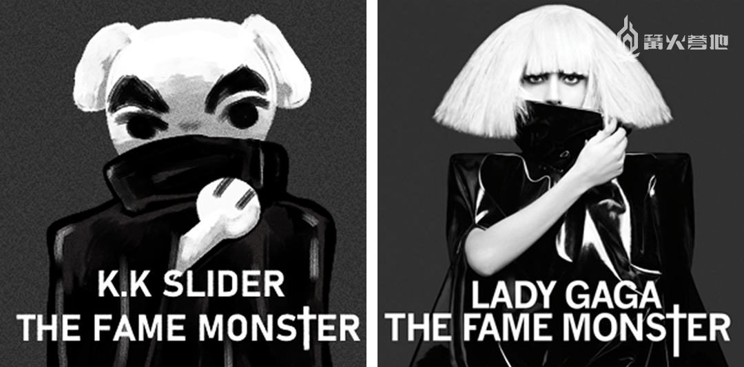 百变歌王,K.K Slider 但除了单纯收藏唱片之外,或许是 K.K Slider 火热的人气,以及其唱片封面的精美设计激发了玩家们的创作欲,在游戏上线后不久,很多玩家就开始纷纷为 K.K Slider 创作起了新的封面,大家将 K.K Slider 与现实中知名音乐人所发行的专辑联想了起来,把 K.K Slider 的形象代入到了大家熟悉的音乐专辑封面之中。以下是部分玩家创作的由 K.K Slider 演绎的不同专辑图片的效果,让人震惊的是,K.K 模仿的每一个姿势、眼神,乍眼看去,真是一点都不违和。 Lady Gaga 2009 年发行的《The Fame Monster》专辑: 图源:推特用户 06u13s