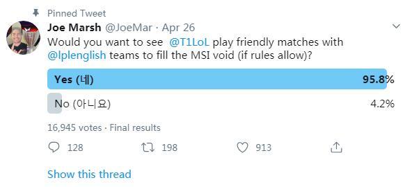 从2012年9月份的宇航员诺提勒斯、宇航员提莫加入游戏之后,Riot至今还未推出新的“宇航员”皮肤。那么这两款皮肤是否能推出呢?10.10版本中就能得到答案了。 昨天LPL赛区春季赛决赛落下帷幕,JDG3:2击败TES成功夺冠,至此四大赛区的春季赛也尘埃落定。由于今年的MSI季中冠军赛宣布取消,所以T1老板再次提议组织线上洲际赛,来弥补赛程空档期。并且@了LPL的JDG、TES和FPX(冠军、亚军、季军)。 其实在LCK春季赛刚刚结束时,T1老板就曾在推特上发起投票活动:你们想不想看T1和LPL战队进行友谊赛?投票结果中,有95.8%的网友选择了同意。那么你认为,如果真的可以组织先下洲际赛的话,你认为LPL的战队有多少胜算呢?