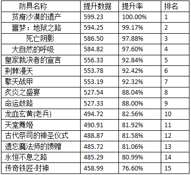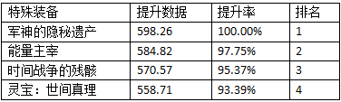 从计算结果来看,工作服首饰的排名不尽人意,排在了最后,和最强的幸运三角相差了6.95%的提升率,没有工作服神话手镯的,不建议使用工作服首饰,但是深渊票刷完了也不出其余三套的,还是可以选择。 【三】工作服特殊装备排名 人物建模依然一样,装备模拟变为工作服防具,工作服首饰,来测试四套特殊装备的提升率,计算结果如下;