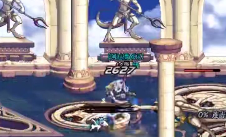 图一有一堆小龙人和一个大龙人。大龙人一直处于无敌状态,并且只有在大龙人插到一名玩家后,才能够将无敌的小龙人清理干净。清理一波小龙人后大龙人会掉血,轮流上去受叉,便可顺利通过第一关,注意因为被插一次就会进入诅咒状态,一名玩家在诅咒状态不能连续被插中两次,不然就会瞬间死亡。使用神秘世界的玩具,解除诅咒状态就可以一直重复被插中。