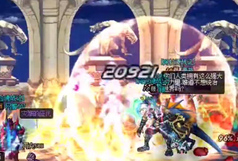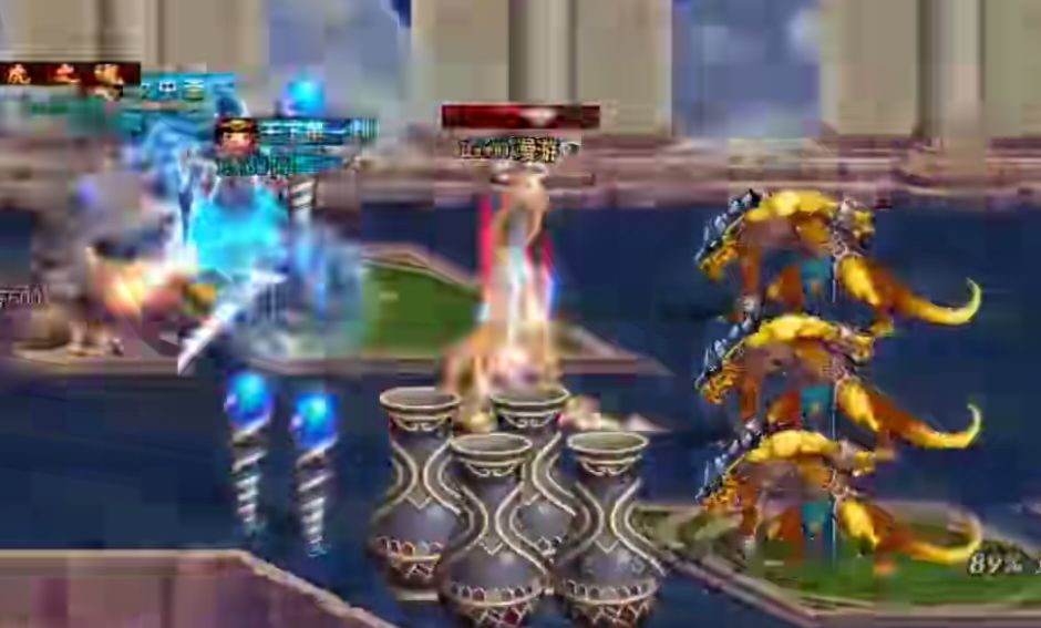 图二是四个不同属性的人偶,分别有不同的技能,并且一个收到伤害另外三个就会大量回血。因此一次只能打一个,建议按照蓝红金紫的顺序处决。一人引三怪,三人集火一怪,花点时间也就过了。